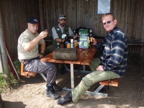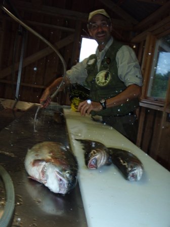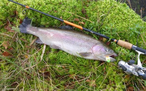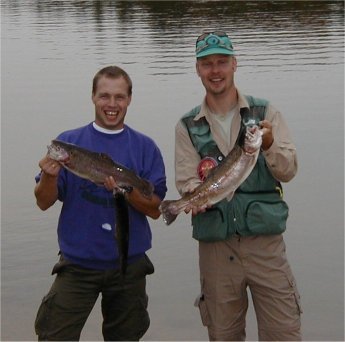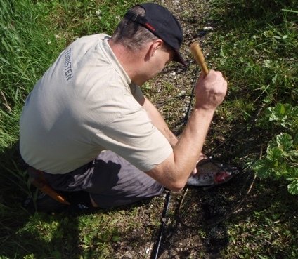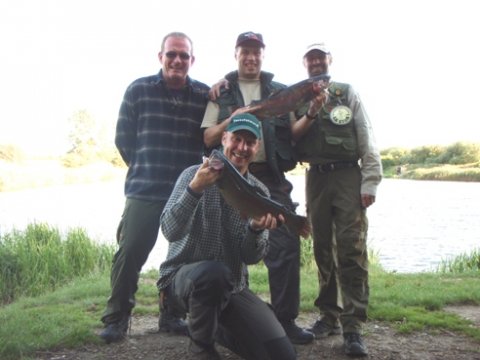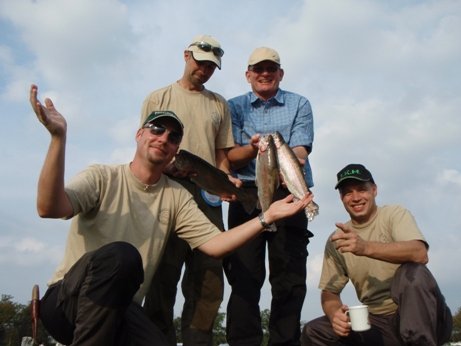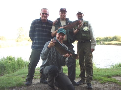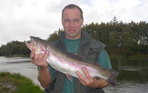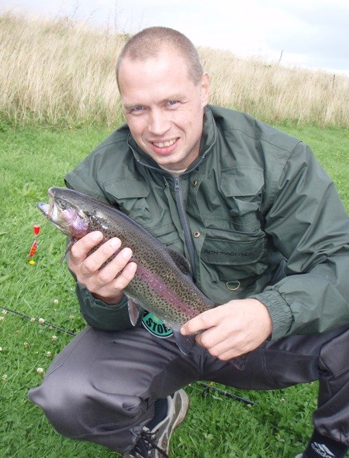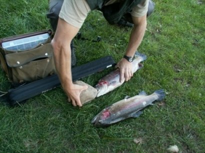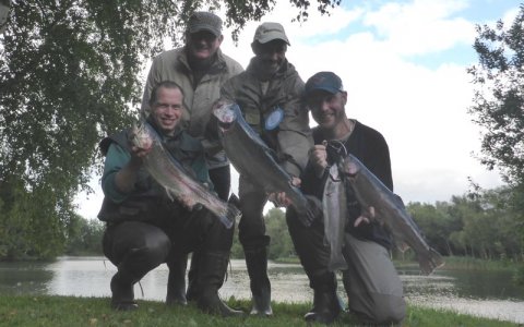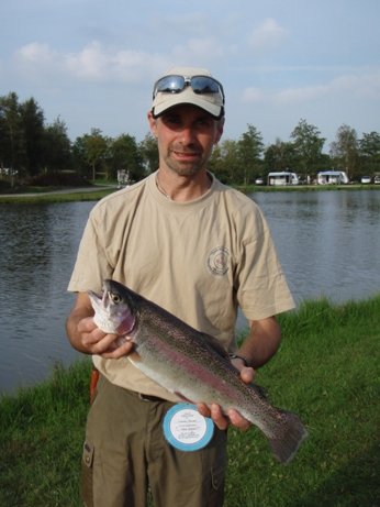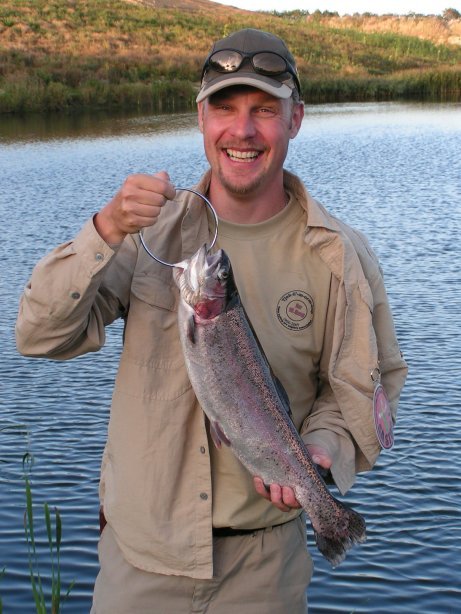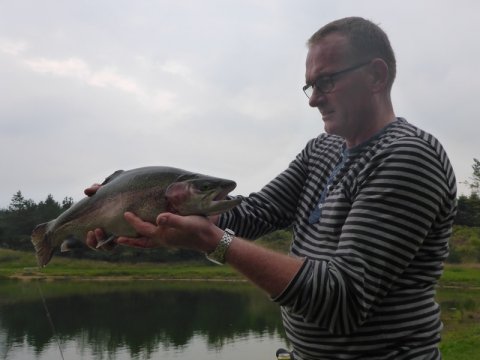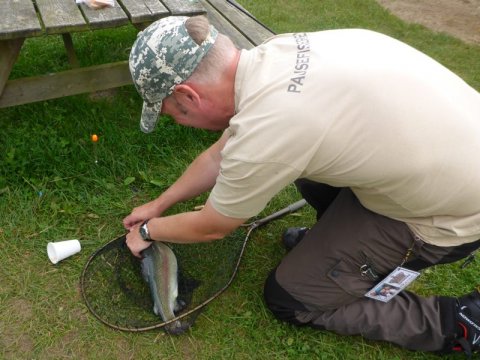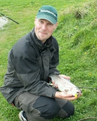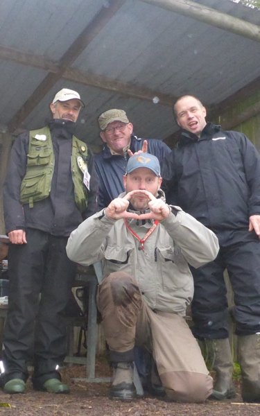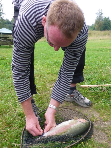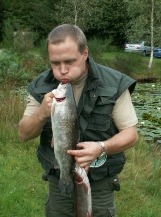 Fiskekongen XVI Den Pausefiskende takker de tro væbnere for en tilpas stridslysten dyst ved den store Fiskesø-flod i det vestjyske! Ja, egentlig var det vel kun Flinkfiskeren der seriøst også prøvede at kroge kongetitlen, som mulig vinder af "Tjek-Li-Æ-Orm Cup 2012". Turisten nøjedes med at prikke lidt til ørredgummer med sine slidte kroge og Fynboen forsøgte blot at holde sig tør i år!? Så afgørelsen skulle vel falde imellem de flotte, men knap så store, bækørreder, som Flinkfiskeren & Pausefiskeren så atletisk havde fightet? Næh! 57 cm velfightende regnbueørred fristet af skalreje gjorde en royal forskel - da Turisten og Pausefiskeren skulle til at gå i gang med kaffe & kage! Hil Pausefiskeren! Heldigvis var der ved den efterfølgende Gallamiddag trøstepræmier til dem uden "fiskefingre": Fynboen fik overrakt en "rigtig flot" regnbueørred støbt i glas ... mens Turisten fik overrakt den fiskestangsimiterende sølvfarvede "fighterpokal" med en friskfanget dåse fiskeboller! Tillykke!