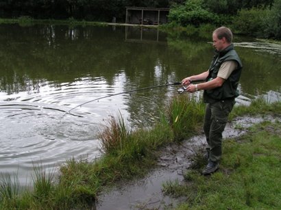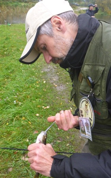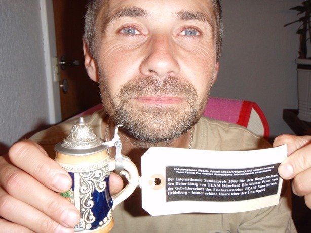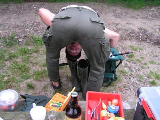 SÅ SGU’!!! FLINKFISKEREN (The angler former known as VÅDE SOKKER) griber til drastiske midler for at tiltuske sig kongetitlen! 5 minutter i indvejning sniger han sig frem fra sivbevoksningen med en pubertetsgedde … og de andre Konger måtte bukke sig i mudderet! Om den lille tyske dreng ved modsatte bred græd over sin bortkomne fisk vides ikke. ”Men”, mente de øvrige Fiskekonger, ”Det skal da være sidste gang, baby-gedder skal afgøre en ”Tjek-Li’-Æ-Orm Cup”!!!