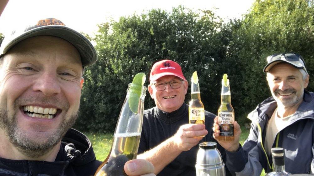 En rigtig lummer sensommerdag mødes Kongerne i det sydjyske ... og må svede igennem lunkne pilsnere og velfangende tyske unger ... lige indtil 4 minutter i lukketid! TURISTEN snupper sejren og en fin regnbue oppe i det eneste skyggefyldte hjørne af søen.