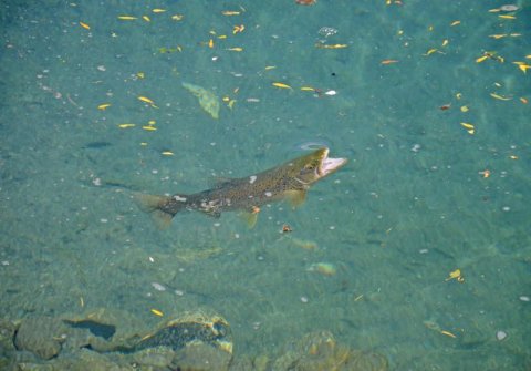 Senere samme dag spotter vi i en pool fem til seks store ørreder, som cruiser rundt i en stor pool. I over en time fisker vi begge ihærdigt på ørreder, men må til sidst opgive, da lyset stille forsvinder.