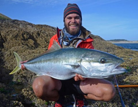 Vejret har været meget dårligt i lang tid, hvilket har betydet, at vi ikke har haft så meget tid ude på klipperne. Men det stopper os ikke fra at fange fisk. I udmundingen af en fjord sejlede vi ud i vores gule kajak for at prøve at fange, hvad der nu end var derude. Den ene sidder så i fronten med stangen og fisker, mens den anden styrer kajakken og smider små fiskestykker ud i vandet for at lokke fisk til. Og det virker! Inden længe cruiser stimer af kahawai rundt omkring kajakken, og vi fanger alle dem, som vi overhovedet orker. Men er der små fisk, så kommer de store også - og ud af det blå forsvinder den stærke fletline i en vanvittig fart. - Shit, er det første, som popper op i hovedet, når stangen, man bruger til de små kahawai, bøjer så kraftigt, at man overvejer at klippe linen, inden det går galt. Endnu en knækket stang på samvittigheden ville ikke være godt. Men med lidt held og efter én tand for spændende fight, kommer der en kingfish til overfladen. - Den er i båden, råber vi til hinanden og sejler direkte mod land. Så var aftensmaden hjemme.