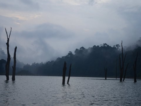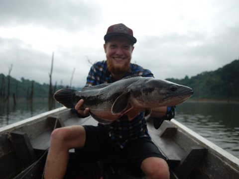 Rammerne omkring fiskeriet var fantastiske. Et landskab taget direkte ud af Jurrasic Park. Chew Lan Lake er en opdæmmet sø, så søen er fyldt med døde træer, hvilket fungerer som skjulested for fisk som snake head'en. Efter et par tilbud krogede Nikolaj en god snake head på helt kort line. Efter en meget kort fight, kom et forhistorisk monster til overfladen. En blanding mellem en fisk og en slange. Efter et par knips med kameraet kunne Nikolaj genudsætte en fin snakeshead på 3-4 kg. Mørket falder ligeså stille på, og vi drager tilbage til vores flydende bolig.