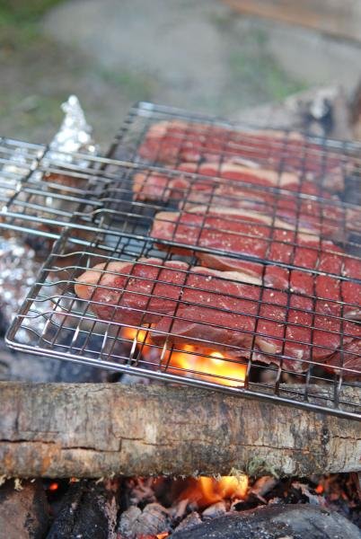 Alt vores mad laves over trangia eller på bål. Så menuen opnår ikke altid nye kullinariske dimensioner. Morgenmaden består altid af havregryn med soyamælk, da vi intet køleskab har. Til middag er de delikate to minutters nuddler på menuen. Om aftenen falder valget ofte på pasta og tomatsovs, så engang imellem sendes der da tanker hjem til mors kødgryder. Det er rigtig "troutbum"-stil. Kommer vi til en by, så ryger der ofte et par store steaks i indkøbskurven, for på New Zealand er oksekød sindsygt billigt og meget bedre end i Danmark. Store bøffer tilberedt over bål, serveret med den lokale øl - ja, så bliver det ikke meget bedre.
