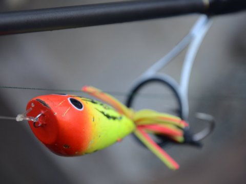 Da vi kom frem, var det ved at være fisketid. Fiskeriet efter snakehead foregår morgen og aften. Stængerne blev monteret med små poppere, for nu skulle der fanges fisk på overfladen.
