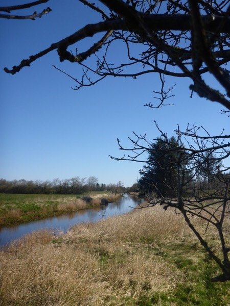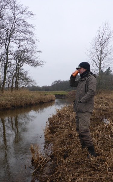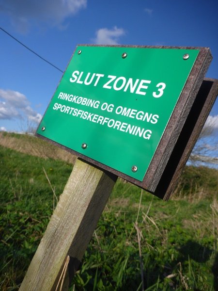 Det startede nu ellers meget godt - helt oppe ved skiltet, der markerer det sidste af ROS' fiskevand på denne side af byen Hover - blev fluelinen sirligt strippet ud i åen - på en plads hvor åen får sig et tæt, grønt tag. Efter 5 meters drev nedstrøms strammes op - der nøkkes en 3 gange med Goldhead Hares Ear-fluen og et solidt hug får stangspidsen på Sage'n til at bukke sig voldsomt! Fast fisk i første forsøg ... men det frydefulde brøl over ådalen udeblev ... efter få sekunders hovedrysten poppede fluen lige pludselig op mod Pausefiskerens skulder ... aaaarrrggghhhh!