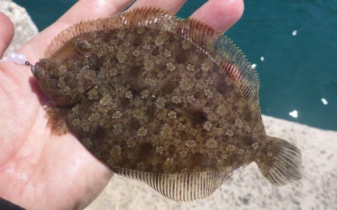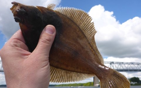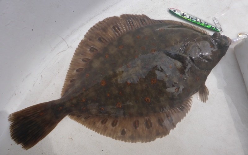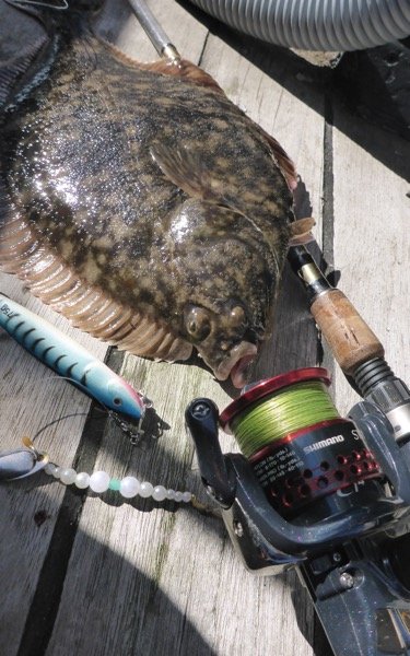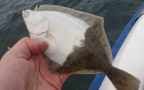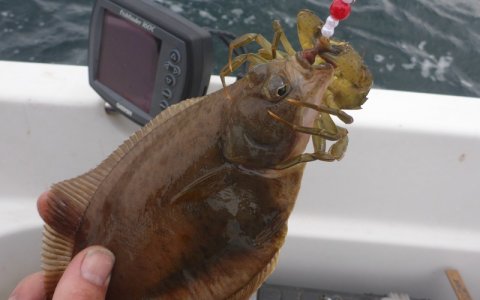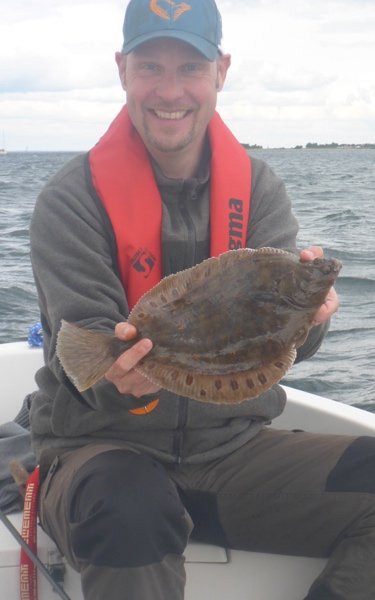 ![]() En vægelsindet skrubbe - den besluttede sent, hvilken vej der skulle være opad? | ![]() Rullesten runder af med en flot skrubbe på 38 cm/610 gram - også en bådrekord! | ![]() Vi kunne have taget en hel del flere flade med hjem - men det [...]er en fornøjelse at kunne genudsætte fisk på målet, fordi man har rigelig! 35 flade kom med til vestkysten! Så mangler vi bare at kroge en omgang nye kartofler og en ordentlig dusk persille! Læs mere...↑ |