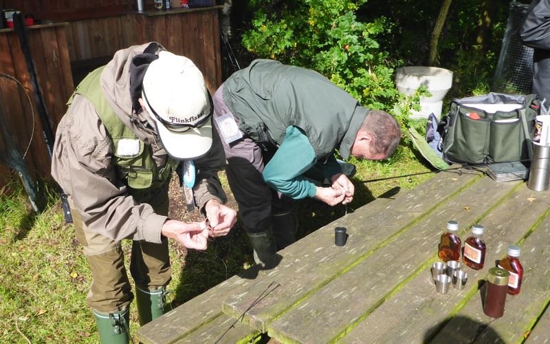 Ved Hagebro blev Nico - den schweiziske forbindelse - og jeg mødt af en glad lystfisker, der kort tid forinden - i fuld dagslys - havde kroget en fin havørred på omkring 3 kilo. Mens vi inspireret og anerkendende iagttog den glinsende velkonditionerede ørredkrop i baggagerummet, måtte han berette tilpas stolt, at denne fisk blot var årets mindste af 7 fine havørreder!