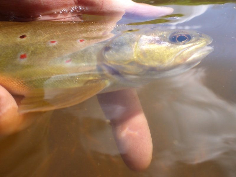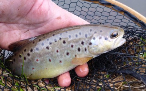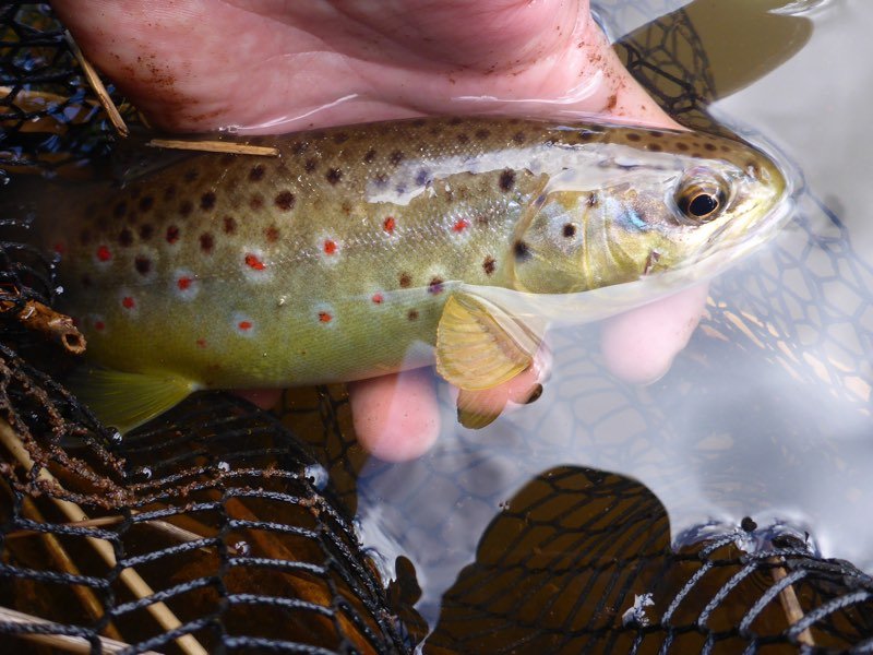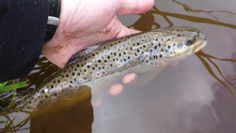 Den massive makrel-duft fra Øst-jyden skræmte dog ikke de små gyldne bækørreder - og de 2 webredaktører hyggede sig til trods for en vældig vind og skiftende skydække.