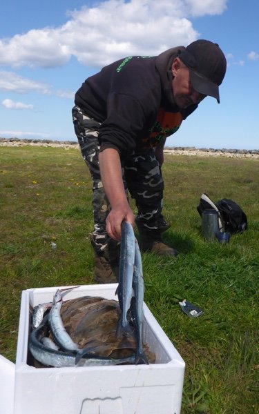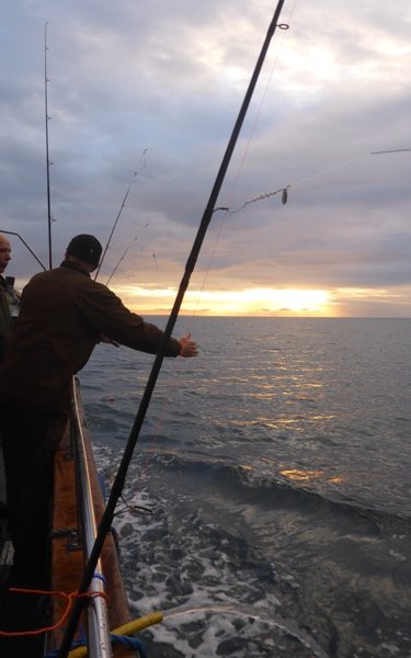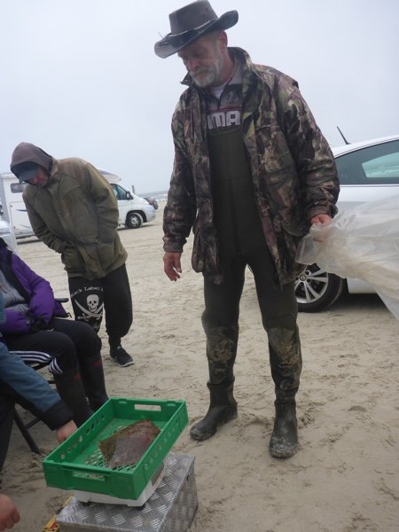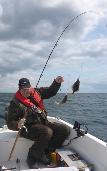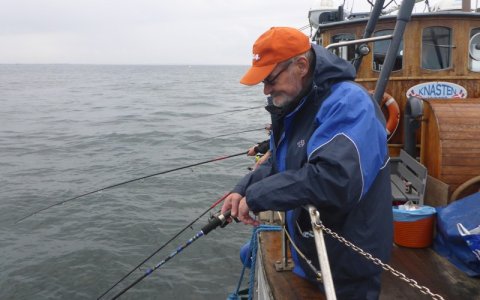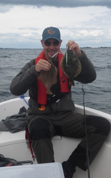 ![]() Pausefiskeren fortsætter kort efter med en omgang dobbelt op! Gode spisefisk pænt [...]over målet! Læs mere...↑ | ![]() Hug også til Rullesten! De første 7-8 flade til ham er alle isinger! [...]Vi lå nok over 3 timer for anker på dette spot - og krogede fine isinger, rødspætter og skrubber! Læs mere...↑ | ![]() ... og så får han da startet en perlerække af dobbelt-hug! 4 eller 5 gange [...]har han 2 fisk med op - de fleste gange med begge over målet (Men vi havde jo også rigeligt med sandorm: "En halv liter pr. mand er da ikke for meget!", mente Rullestenen ...). Læs mere...↑ | |||