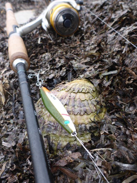 4 forsigtige hug i de første 11-12 kast ... med den nyindkøbte Storm Gomuko [...]Spin 4,5 cm/6 g. Hvorfor kunne den ellers skarpe lille 3-krog ikke sætte sig i kæften på en regnbueørred ...eller en af søens fine røddinger??? Årets sidste tur sluttede med et voldsomt ønske om sprøjtende fight på det lette grej ... kald det bare et nytårsforsæt!