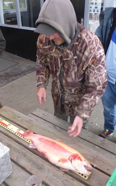 ![]() En tyvfisker kigger frem fra sit skjul! Mon man ikke snart kan få fred [...]til at gå på rov? Læs mere...↑ | ![]() Per Fluen ved indvejningen - dagens 3. største fisk - regnbueørred på 54 cm! [...]Ikke nok til at true Niels og førstepladsen samlet - men dog en fisk, der giver Per en samlet 2. plads i 2015-mesterskabet. Læs mere...↑ | ![]() Ruller sniger sig ind på dagens 2. plads ved Nebel Sø med en lummer guldø [...]rred på 55 cm! Læs mere...↑ |