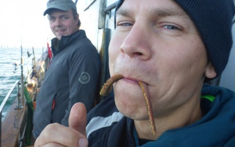 ![]() Vi rammer for anden weekend i træk en fantastisk flot efterårsdag på [...]vandet! Faktisk var denne lørdag endnu mere indbydende - vejrmæssigt! Læs mere...↑ | ![]() Der havde været sandormepanik i løbet af ugen - så børsteorm [...]til kr. 3,00 pr. stk var landet på kutteren! Hr. Fiskefoto.dk godkender kvaliteten! Ready for NOMA! Læs mere...↑ | ![]() Kun til ære for fotografen er der en hel børsteorm på krogen - [...]men ellers er rigget en genudsendelse fra for en uge siden. 40 grams pirken skiftes dog grundet strømforholdene senere til 75 gram! Læs mere...↑ | |||