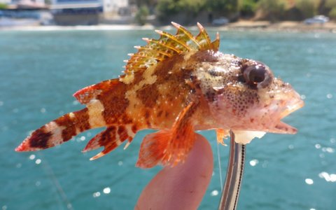 ![]() Savage Gear Sandeel-jiggen er spændt efter et klassisk dansk sildeforfang - inspireret af [...]de mange stimer af små fisk der dannede små sølvskinnende skyer i havnebassinet. Et forsøg, som de lokale rovfisk ignorerede på det groveste ... Læs mere...↑ | ![]() Aktivt fiskeri gav sved på panden - og ikke andet! Når alt andet [...]glipper: Pausefiskeri! Heldigvis var der i den sidste af 5 mini-markets pillede rejer i fryseren - så de noget blege krebsdyrkroppe kunne agnes på et ganske almindeligt fladfiskeforfang med 2 kroge. Efter 15 minutter med drillende hug, der ikke ville hænge fast, blev de almindelige fladfiskekroge byttet ud med noget mindre, men meget skarpere medekroge i størrelse 4. Læs mere...↑ | ![]() TA-DAAAA ... første drev med det tilpassede rig: Pausefiskerens første fangst fra Middelhavet! [...]Ikke just storvildt - men en lille frækkert af en scorpionfish (Scorpaena papillosa). En eksotisk fætter til vores egen ulk - så forsigtighed med peang-saksen ved fotografering og afkrogning! Læs mere...↑ | |||
