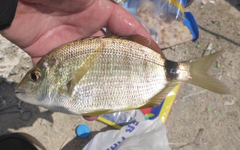 ![]() Fangstglæden tenderede det berusende - men den første middelhavsfisk blev også fejret [...]med et lille "fix" ... Læs mere...↑ | ![]() Jamen dog! Glæden vil ingen ende tage! Straks efter genudsætningen og fejringen [...]af den lille skorpionsfisk vibrerede stangspidsen igen i et voldsomt angreb. En vældig "white sea bream" (Diplodus vulgaris) fightes med stor fornøjelse ind til molen. Læs mere...↑ | ![]() Fin fight på det lette grej - den formodede "white sea bream" tættere på. | |||