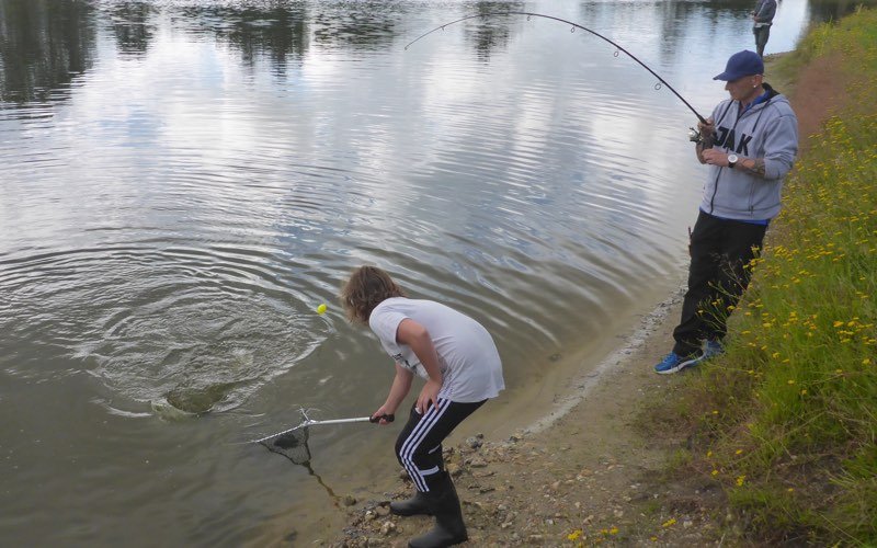 ![]() 20 børn og voksne fra Bundbid-familierne krydsede klinger syd for Stauning. | ![]() Regnbuerne bider frisk til ... først hos konen, så hos manden ... René gokker her [...]sin egen regnbueørred - kort efter han hjalp med at lande Sannes! Læs mere...↑ | ![]() Masser af børnearbejde ... eller motorisk træning med nettet? | |||