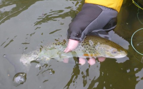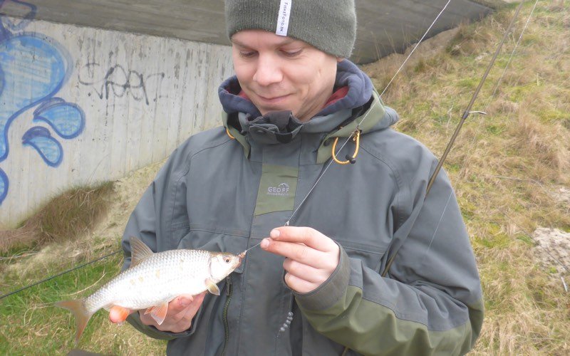 ![]() Pausefiskeren får pludselig lidt puls - en 2-3 regnbueørreder møfler rundt [...]om hans agnede orm en halv meter fra brinken - og i 2 omgange tages ormen prøvende i munden af den ene! Men begge gange spyttes krog og orme-rest ud inden der kan gives ordentligt tilslag. Hurtigt downsizes krogen og en ny orm droppes ned i hullet i grøden ... Læs mere...↑ | ![]() Regnbueørreden vendte tilbage - og HAPS! Man kunne tydeligt se ormen forsvinde helt [...]ind i kæften - og tilslag og fight var den rene fryd! Pausefiskeren lagde sig i spidsen af dysten med en fedtfinne over 40 cm ... Læs mere...↑ | ![]() Flinkfiskerens prop forsvinder kort efter ... tilslag ... og ... aborre! | |||