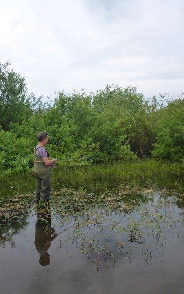 I naturformidlingens tjeneste for ROS og den årligt tilbagevendende begivenhed Naturens Dag. Pausefiskeren var på "instruktørholdet", der skulle guide bl.a. børnefamilier ved fiskesøen i Fiske- og Familieparken.