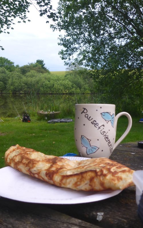 Pausefiskerens fødselsdag og endelig lidt vejrmæssige sommerfornemmelser i Vestjylland! Kunne man afkorte arbejdsdagens rutine lidt for at fejre sig selv med en god kage til kaffen sammen med den yndige ægteviv ... og måske inden det nå at snige rundt i solstrålerne ude ved en af broerne over Vonåen for at mærke et par sortstribede hilse hovedrystende tillykke med dagen på UL-stangen?