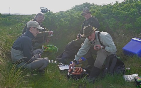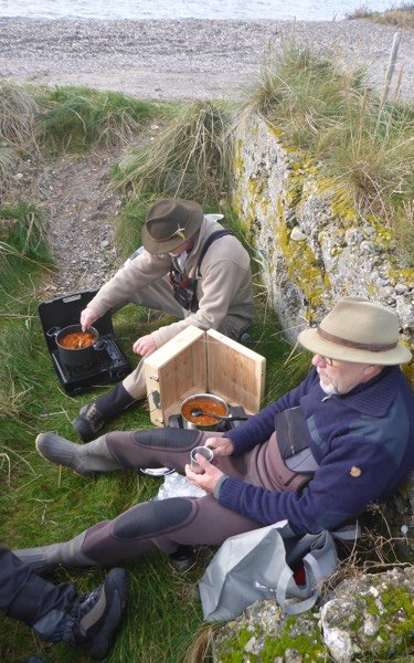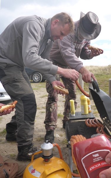 ![]() Nordkyst-holdet kørte til middag til Tappen - hvor Kaj Børge og 2up [...]lokkede de andre fra ROS ind fra revet med duften af Ungarsk Gullash-suppe. Læs mere...↑ | ![]() Samling på ROS-profilerne ved gryderne - der tankes varme og positive tanker til eftermiddagens [...]fiskeri. Tak for mad til køkken-cheferne! Læs mere...↑ | ![]() Solen prøver at kæmpe sig frem til 2. halvleg af kystfiskeriet. Alle 9 fisker [...]nu på Tappen. Pausefiskeren nu med blink ... men er det mere effektivt? Læs mere...↑ | |||
