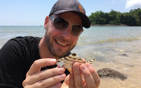 ![]() Fish at the rocks! Et par tjenere ved håndklædeudleveringen ved poolen sendte [...]Pausefiskeren til venstre på stranden. Groupers! De lokale fangede en del groupers mellem 1-3 kilo på strækningen ved klipperne. Pausefiskeren prøvede i næsten 2 timer på stigende vand - spinnefiskeri med metal og gummi. Uden kontakt. Resten af stranden måtte afsøges efter noget levende i det virkeligt varme vand! Kystfiskeri i badebukser og vand med temperatur omkring 28-30 grader! Læs mere...↑ | ![]() En dolkhale er strandet! En lokal mand er ved at skubbe det levende fossil [...]ud i havet igen. Læs mere...↑ | ![]() Et gammelt, men effektivt design! Wikipedia: En dolkhale er et marint leddyr som er [...]tættere beslægtet med edderkopper end med krabber ... Dolkhaler er levende fossiler, da man har 440 millioner år gamle fossiler, der ligner de nulevende dolkhaler. Læs mere...↑ | |||