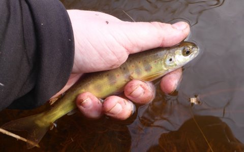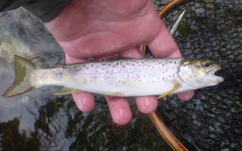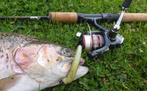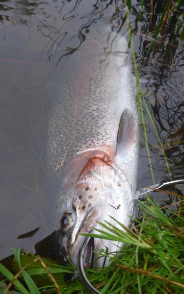 Pausefiskeren har 3 hug på en lille Savage Gear wobler - den ene regnbueørred [...]på små 35 cm når endda at blive afkroget og vist frem foran flere sæt store børneøjne ... lige inden den sprællende ruskede sig fri af min hånd og stak af! Dagens største skalle bliver derfor valgt som trofæ-portræt!