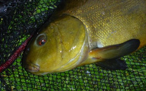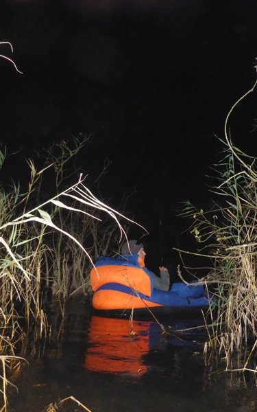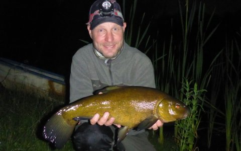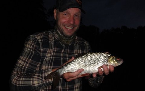 ![]() Endnu et fornøjeligt sæt striber fra Den Gamle Grusgrav. | ![]() Bam! Godt hug - god fight! Men fisken rykker ikke vildt i målebå [...]ndet! Den runder vist lige de 30 cm - skumringens store røvere er ikke helt så store denne gang? Læs mere...↑ | ![]() Pausefiskeren efterlyser en lodsbod med projektør, men klarer alligel at finde indsejlingen efter 8 [...]-10 af de berømte "sidste kast" ind i aftenmørket. Kasper holder ærbødigt afstand i rørskoven, mens Pausefiskeren elegant kæmper med svømmefødder, mudder og stive ben ved udstigningen af flyderingen på lavt vand. Måske er Pausefiskerens ellers atletiske krop alligevel lidt udfordret efter samlet 6-7 timer på vandet i badedyret! Storskællet tak til Kasper for endnu en fornøjelig ekspedition i det østjyske - jeg er snart klar til kamp igen! Læs mere...↑ |