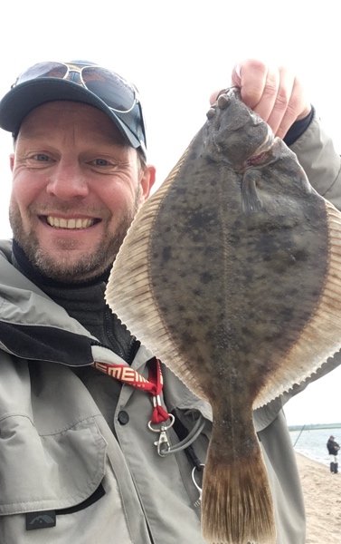 ![]() Svenskeren smiler pludseligt bredt! Endelig en fin rødspætte på Gustavs forfang! | ![]() Det begynder at ligne noget ... | ![]() "Nu kaster jeg ud og kroger en rødspætte på 42 cm", sagde Pausefiskeren. [...]Det var ikke helt rigtigt - men 2 minutter senere kunne jeg posere med rødspætte på 40 cm/510 g! På en lidt sløv dag kunne den måske skaffe både point og kolde kontanter? Læs mere...↑ | |||