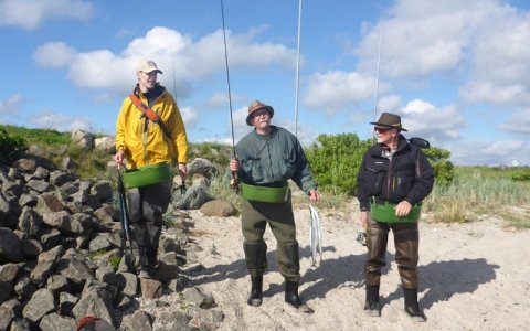 ![]() Formanden Kaj Børge, 2up og Pausefiskeren startede på nordkysten af Jegindø med fluegrejet [...]- hvor der var nap til alle - men med Kaj Børge som den mest effektive bl.a. med en ca. 50 cm og en 40 cm havørred til afkrogning. Begge fisk genudsat. Læs mere...↑ | ![]() ... Pausefiskeren udfordrer sig selv med fluegrejet i en lige lovlig stabil vind - og [...]sætter de første 5 kvarter mest rejeimitationen i egen krop og beklædning. Efter en kort pause med en lille slurk rom dukker solen frem et par øjeblikke - kastene ligger pludseligt ganske fine og her mærkes det første (og eneste) hug på fluen ved en stenformation tæt på parkeringspladsen. Læs mere...↑ | ![]() På Tappen var der også en del action til de 6 andre fiskere med hug [...]og undermålere - og fisk, der hoppede af - mens Peter fik fightet denne velnærede fedtfinne på 43 cm hjem til køkkenet! Læs mere...↑ | |||