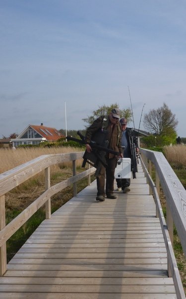![]() Der stævnes ud på mosen. Vandet ligger næsten blankt hen. Lidt svæ [...]re forhold for en Pausefisker, der mangler lidt koordinering af motorikken i forhold til den uvant store flue og wiren og ... en hel del andet! Mens der kommer lidt gled i mine kast plasker Kasper pludseligt veltilfreds med dagens første fisk! Gedde fra børnehaveklassen - med spaghetti? Læs mere...↑ | ![]() Pausefiskeren cruiser rundt i mosen og øver kast ... uden en eneste velvillig kontakt ... | ![]() Kasper benytter derimod hjemmebanefordelen til at kroge både fisk nr. 2 og 3 - og [...]de bliver større efterhånden! Dagens største er lige under de 60 cm. Læs mere...↑ | |||