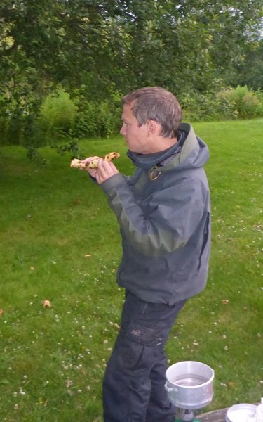 ![]() ... så afsøges et par skumle bugter med Pigshad Jr. på det lidt tungere [...]grej ... men fortsat ingen kontakt til søens gedder. Læs mere...↑ | ![]() Chefkok Strube rigger an til frokosten - med Ludwigs Jul fra Mylius-Erichsen Bryghus som assistent. | ![]() Feltmæssig korrekt "mens-vi-venter-forgæves-på mutter-skarptand"-hotdog - med chefkokkens hjemmedyrkede/hjemmesyltede grønne [...]tomater som kulinarisk twist! Helt plingeling! Læs mere...↑ | |||