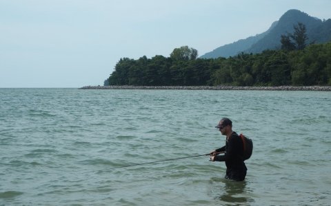 ![]() Igen var der ikke det mindste at mærke ved klipperne - ud over [...]klipper! Dagens aktører mangler et par kollegaer på kokosnød-paraden - et dansk kystblink og et gummidyr på texas-rig blev derude i stenene! Læs mere...↑ | ![]() Ikke en gang halvmåne-aborrerne var til at finde. Mens skyerne trak sig hastigt [...]sammen over Pausefiskerens hoved, blev der opgivende kastet det sidste kast i bækkens ene pool, der opstår ved højvande, når saltvandet presser sig ind. Duk, duk! Der var en fisk, der prøvesmagte morgenmads-pølsen. Tilslag! YES! Siden Pausefiskeren droppede akvarierne og lystfiskeriet overtog, har det været en lille hyggelig drøm at fange yndlings-akvariefisken - en malle! Igen ikke verdens største - men et mellemstort eksemplar af Arius sagor (Latin) - Sagor Catfish (Engelsk) - Badukang (Malay)!!! Prægtigt! Og hvem har så ellers lige fanget en mundrugende fisk? Læs mere...↑ | ![]() Og så var det bare om at komme indenfor! Om det var den kinesiske [...]gud, der havde ansvaret for havets fisk, er uvis - men nogen eller noget satte en ordentlig omgang uvejr og troperegn i gang over Damai! 45 minutter senere smilede solen igen ned fra en næsten skyfri himmel ... et tilpas drama med happy-end som farvel til Pausefiskerens første - men ikke sidste? - ekspedition med stang og snøre i troperne! Læs mere...↑ |