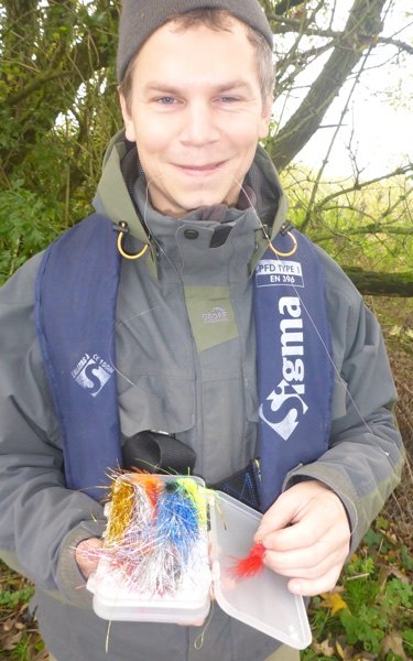 Og at selvsamme Kasper så på dagens første stop opfordrer (eller udfordrer?) til kamp med fluestangen og flashfluer i den lavvandede mose - så er det bare afsted på nye skællede eventyr i det østjyske! Også selv om vejret næsten ikke er efterårsagtigt: Ingen vind og 15 grader!