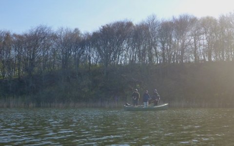 Turen gik - måske ikke så overraskende - helt ud på heden i det midtjyske. Nemlig lige til den sø, hvor Pausefiskeren krogede sin første fisk over meteren for næsten præcis et år siden!