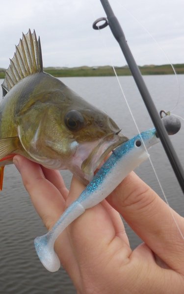 ![]() Test-fiskeri - Strike Pro har efter succesen med Pig Shads til geddefiskeri downsized gummiet [...]til en aborre-agn: Piglet Shad. Første kast med den lille grisling monteret på jighoved ... BAM! Læs mere...↑ | ![]() Endnu et stykke vej til de 40 cm ... men Pausefiskeren synes alligevel velfornøjet! | ![]() Aborre nr. 2 på grislingen beviser, at Pausefiskerens bekymring over størrelsen på gummiet var [...]unødvendig! Næsten alle 10 cm er suget ind i gabet - ja, nærmest helt ned i mavesækken! Læs mere...↑ |