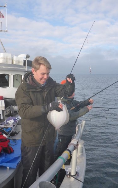 ![]() Efter middag - og et besøg af fiskerikontrollen (Hurra for dem!) - tø [...]ffes der ud til Årø - når fedtfinnerne ikke vil lege, så vil de flade vel? Læs mere...↑ | ![]() Der testes! Rustfri har blancheret sandorm og frosset dem ned! Overraskende god konsistens - [...]og så splatter de ikke ud med gul saft, som de friske, når de agnes på krogen. Men accepterer de flade denne ret? Læs mere...↑ | ![]() De kræver dog en del tålmodighed - fladfiskene. Der nappes lidt i [...]dybet - både på sandormene og på rejerne. Læs mere...↑ |